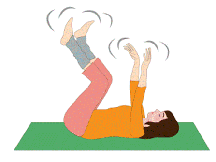暖かい部屋で腕の上げ下ろし、イスに座って足の上げ下ろし、何かにつかまって足踏みやスクワットなどをして、体全体の筋肉がこわばるのを防いでおきましょう。