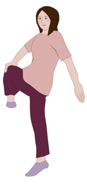 ◇体の前で右手で左膝を1回たたく、左手で右膝を1回たたく。